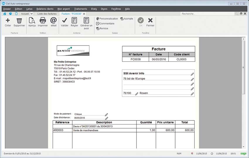 - Vous conservez vos habitudes de travail grâce à une interface similaire à Ciel Auto-entrepreneur.
