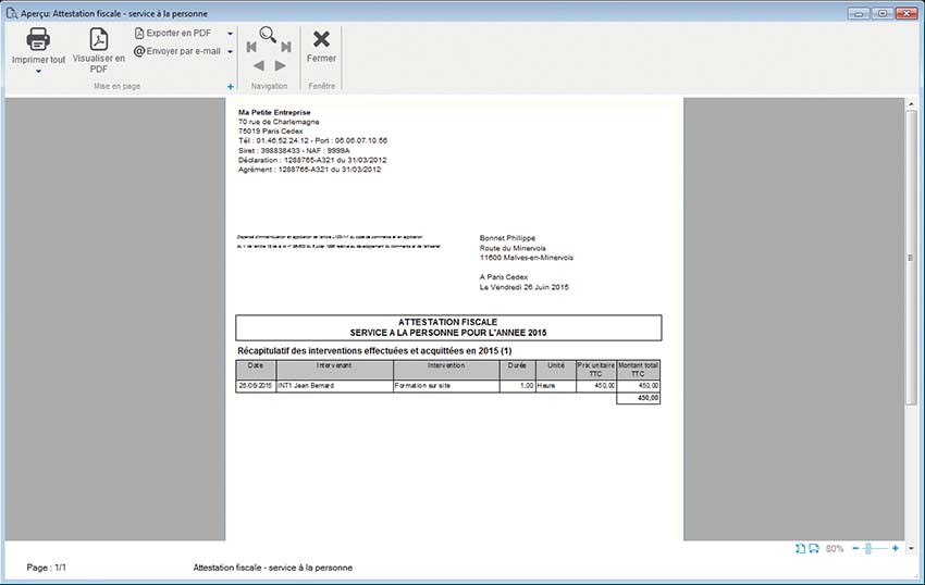 - Editez les attestations fiscales de service à la personne pour que vos clients puissent bénéficier d’une réduction ou crédit d’impôt.