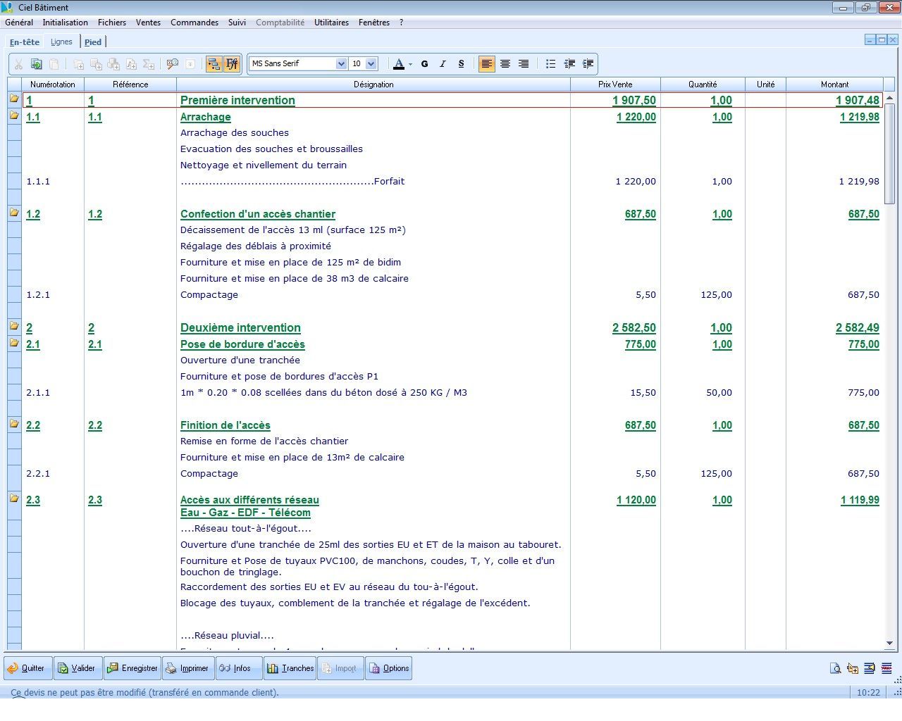 Réalisation des devis professionnels avec tranches de travaux, factures