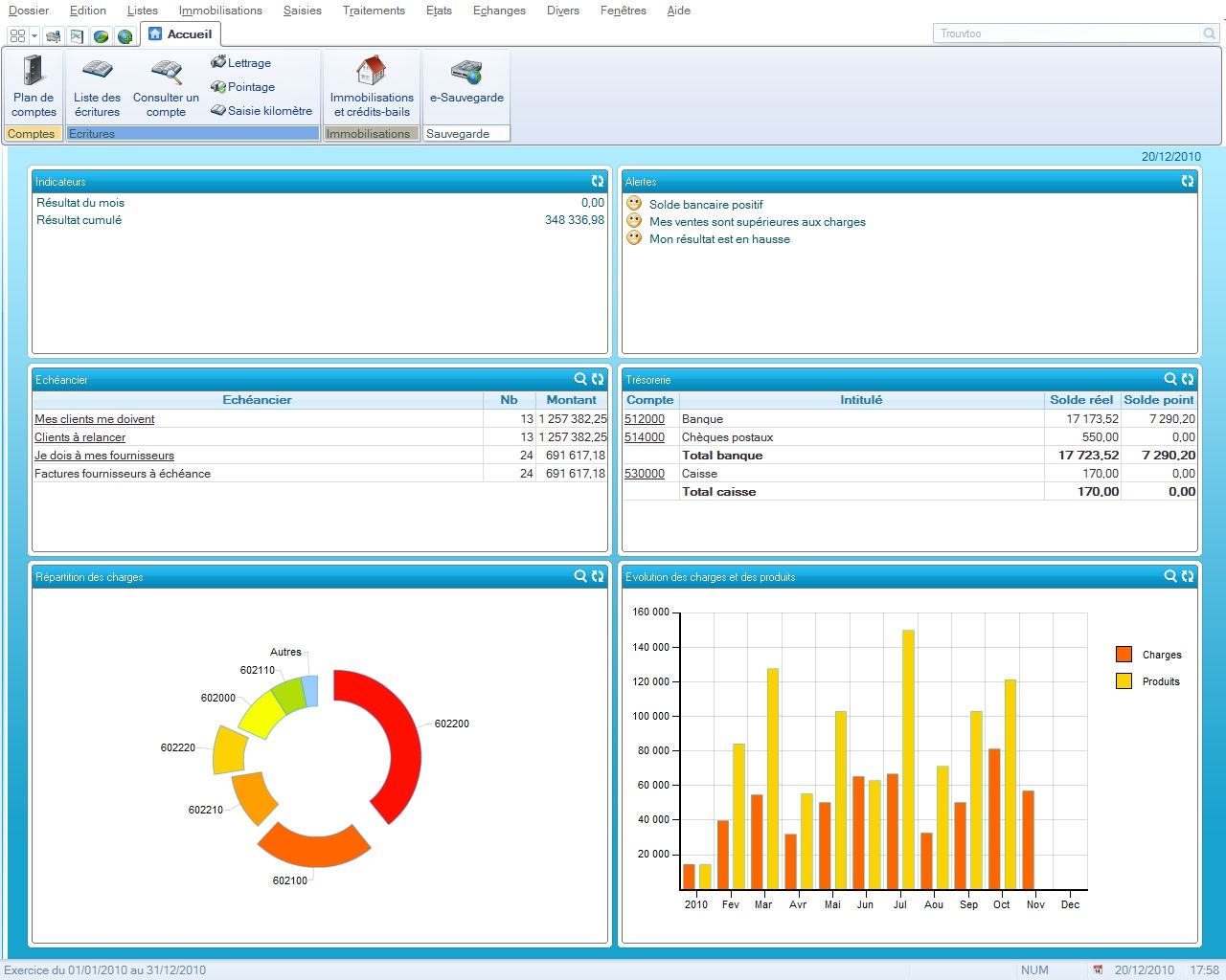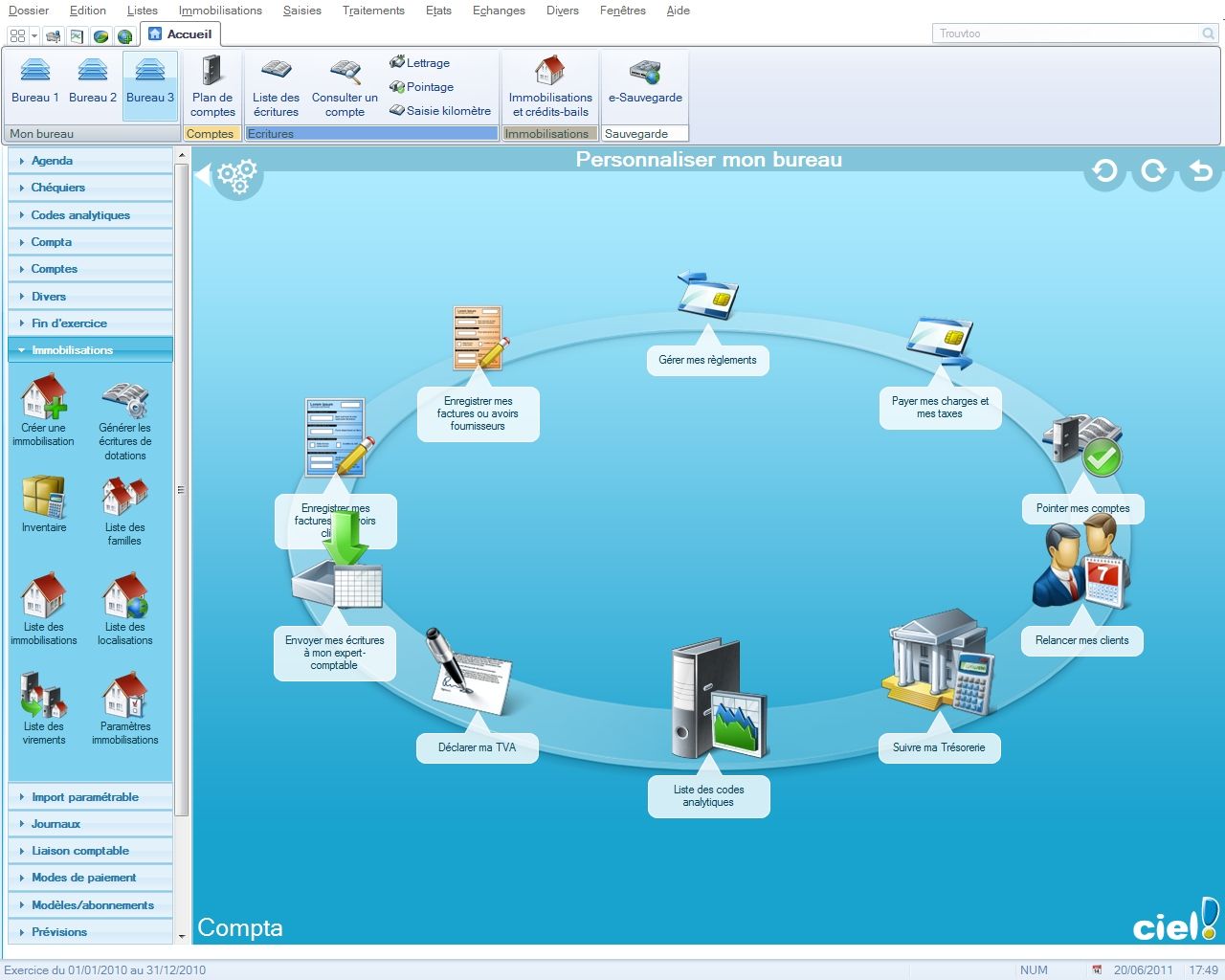 les budgets, l’analytique et la trésorerie prévisionnelle. Intègre la gestion des immobilisations, du calcul des amortissements jusqu’à l’inventaire…
