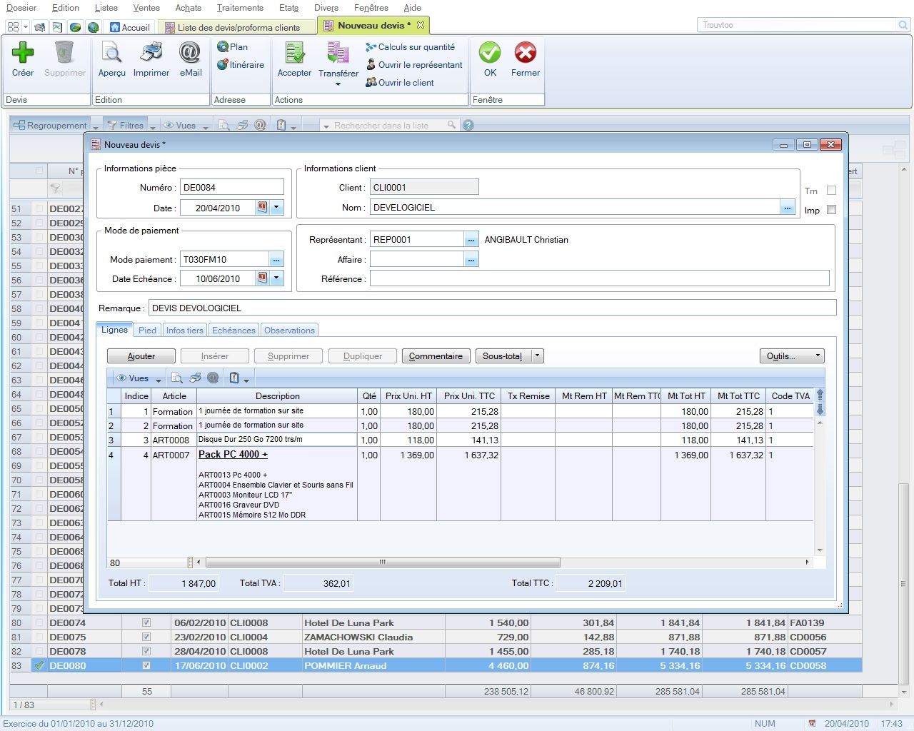Formation commerciale, vente et facturation: