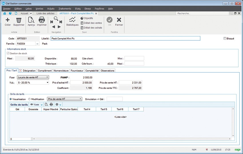 les achats, les livraisons, les commandes, les pro formas, la gestion de stock, l'inventaire, la gestion des commerciaux, les remises clients, les fiches articles avec photo, code-barre, poids, etc.
