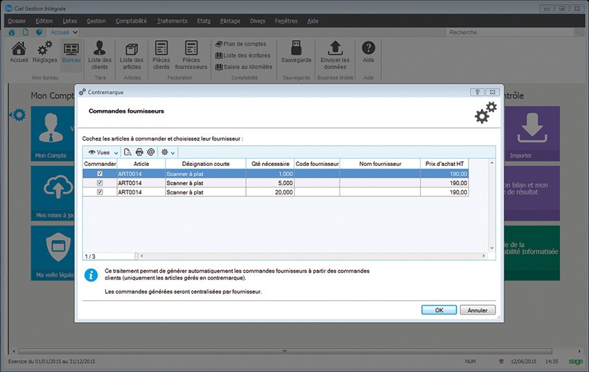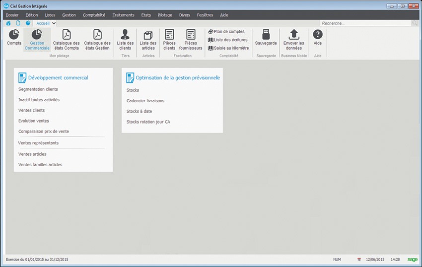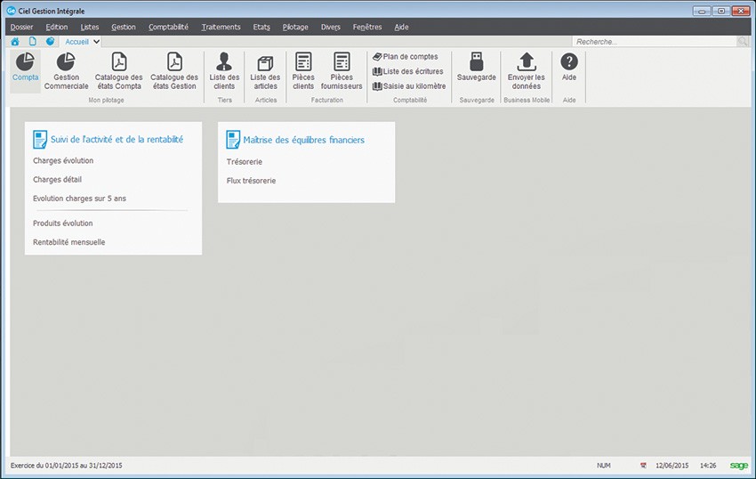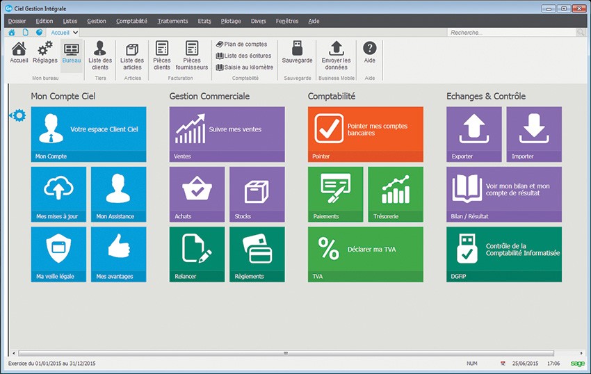 Le PGI (progiciel de gestion intégré) Ciel intégrant dans un unique logiciel : la gestion commerciale et la comptabilité.